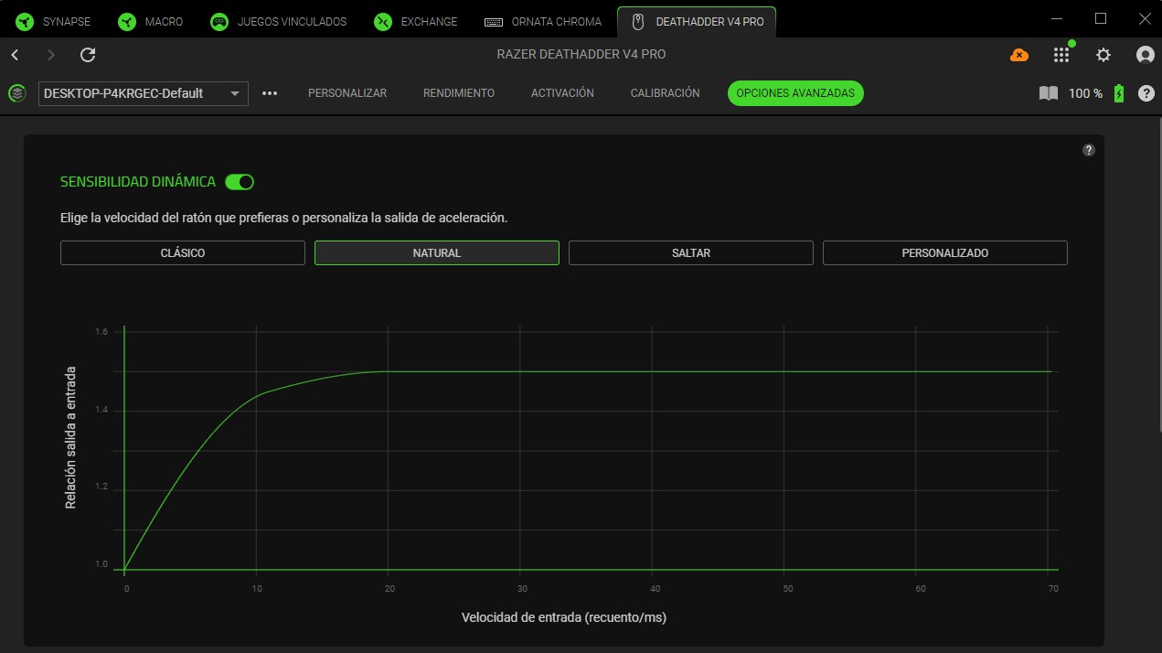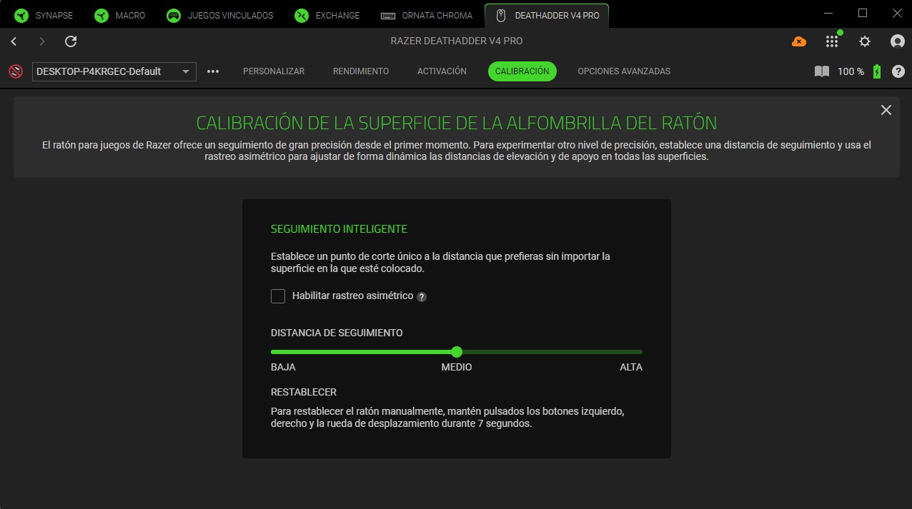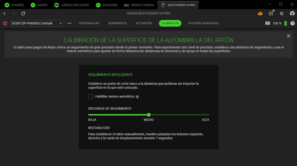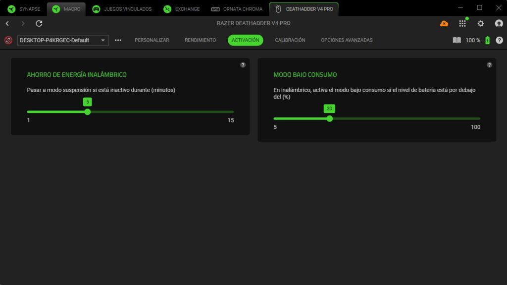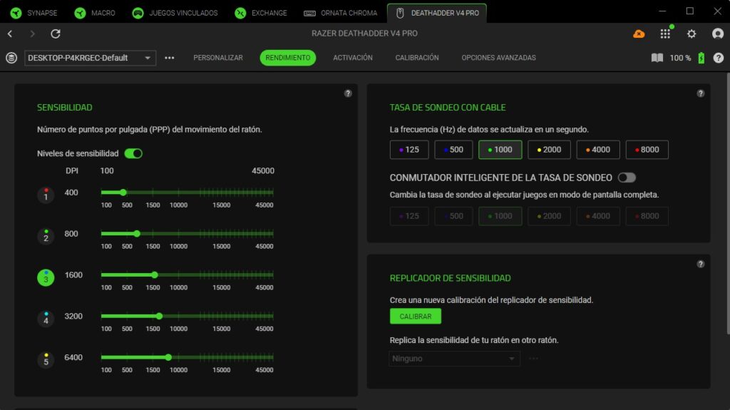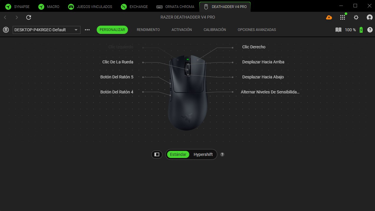 Una vez configurado, tendremos acceso a distintos menús de personalización del Razer DeathAdder V4 Pro.