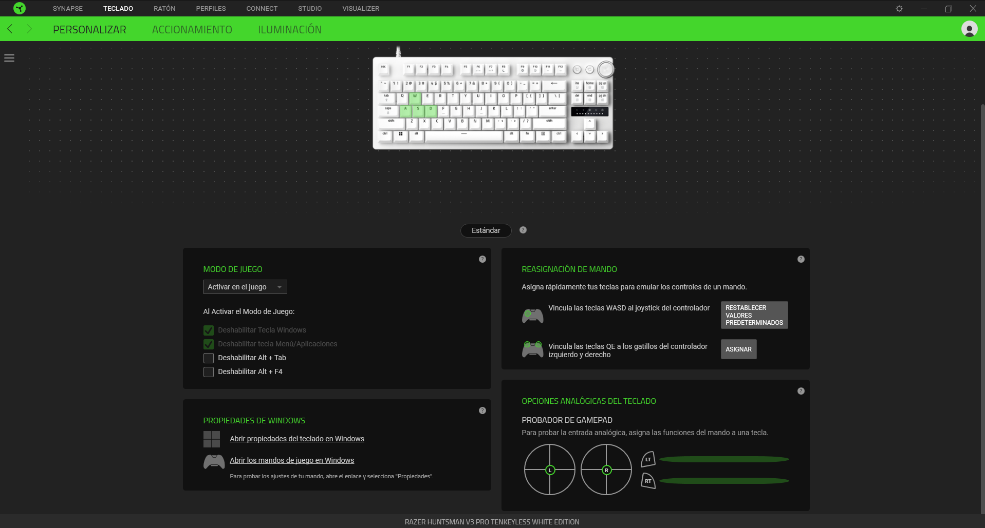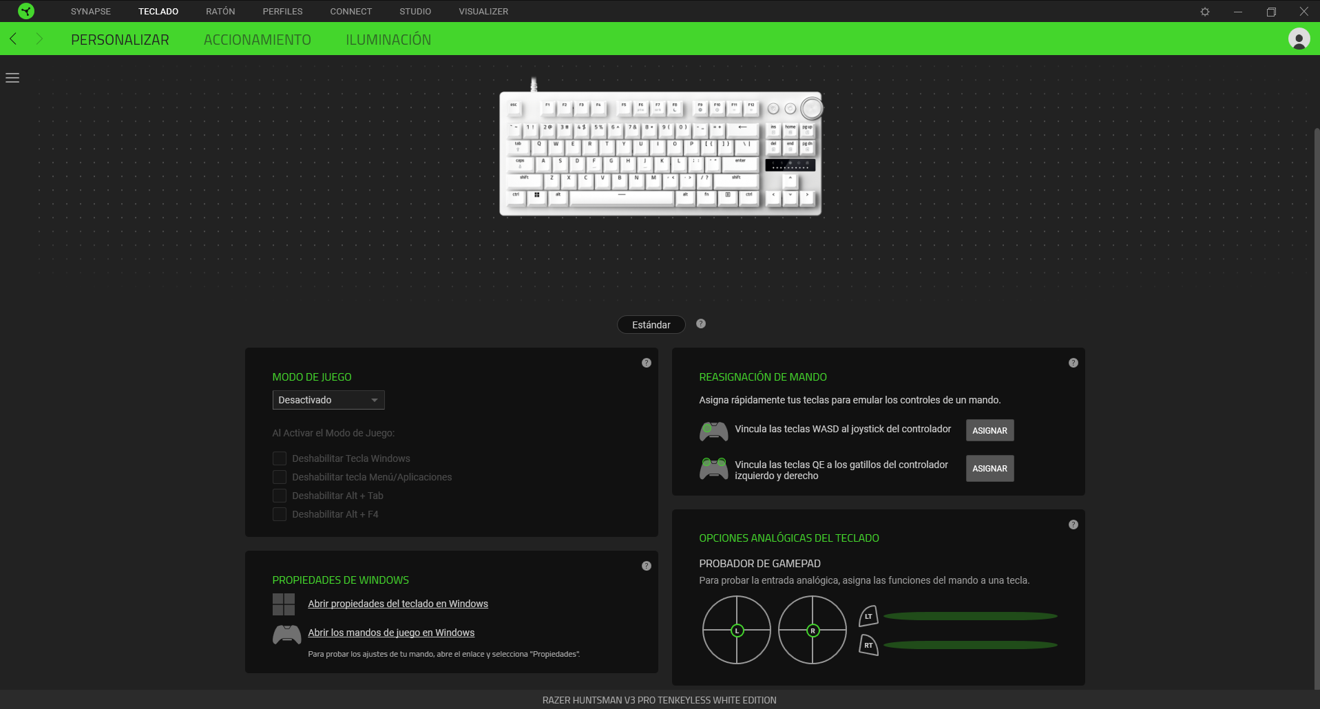 Una vez actualizado podremos comenzar a configurarlo, gracias a sus múltiples menús podemos reasignar las teclas y su comportamiento, añadir macroso incluso añadir funciones dobles a una misma tecla y como no puede ser de otra forma, al tener iluminación Razer Chroma por lo que podremos configurar los efectos y dejarlo a nuestro completo gusto.