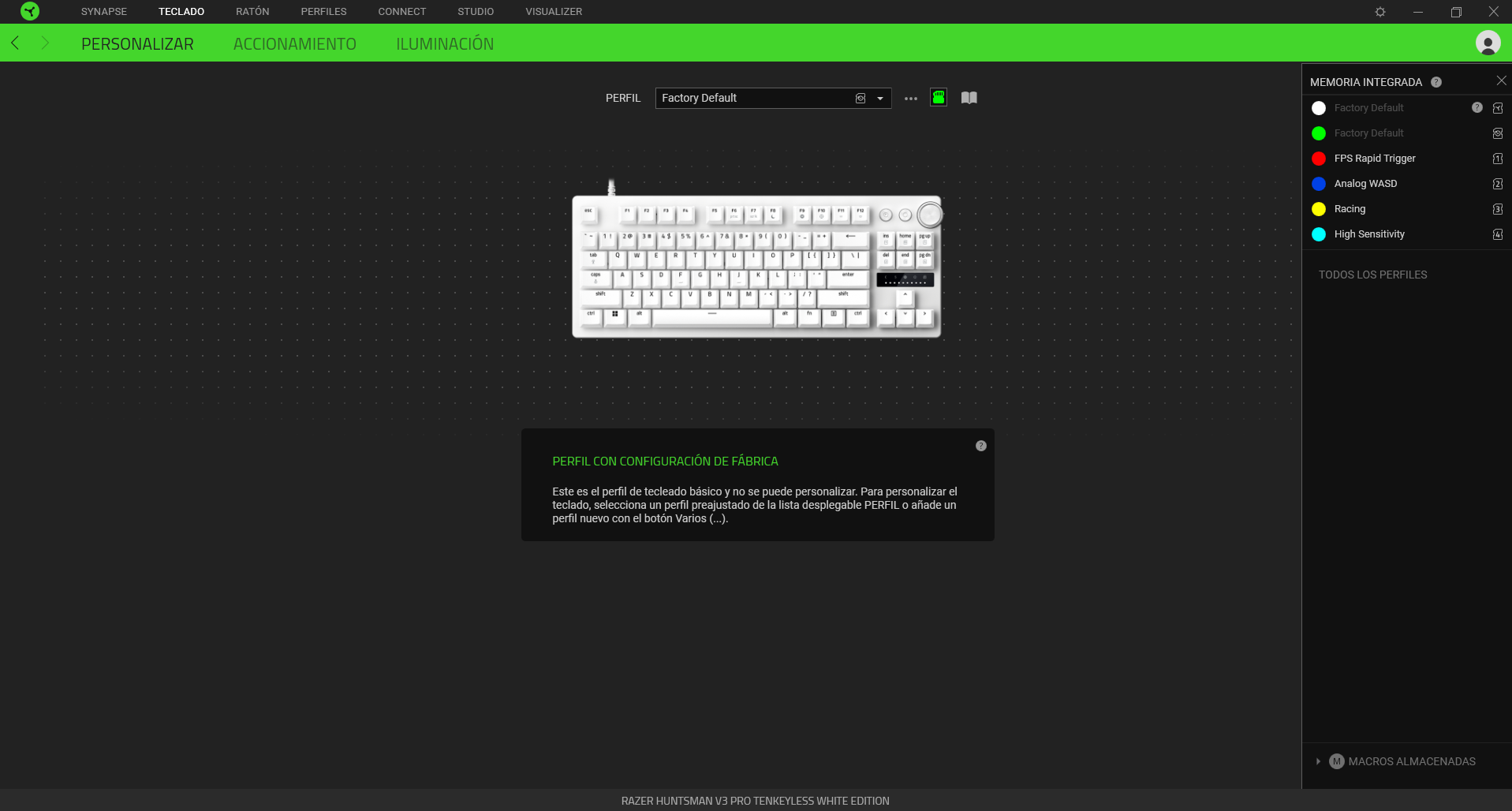 Al igual que otros teclados de la gama Hunstman podemos seleccionar entre 6 perfiles predefinidos (5 + 1 por defecto) que podremos ir intercambiando.