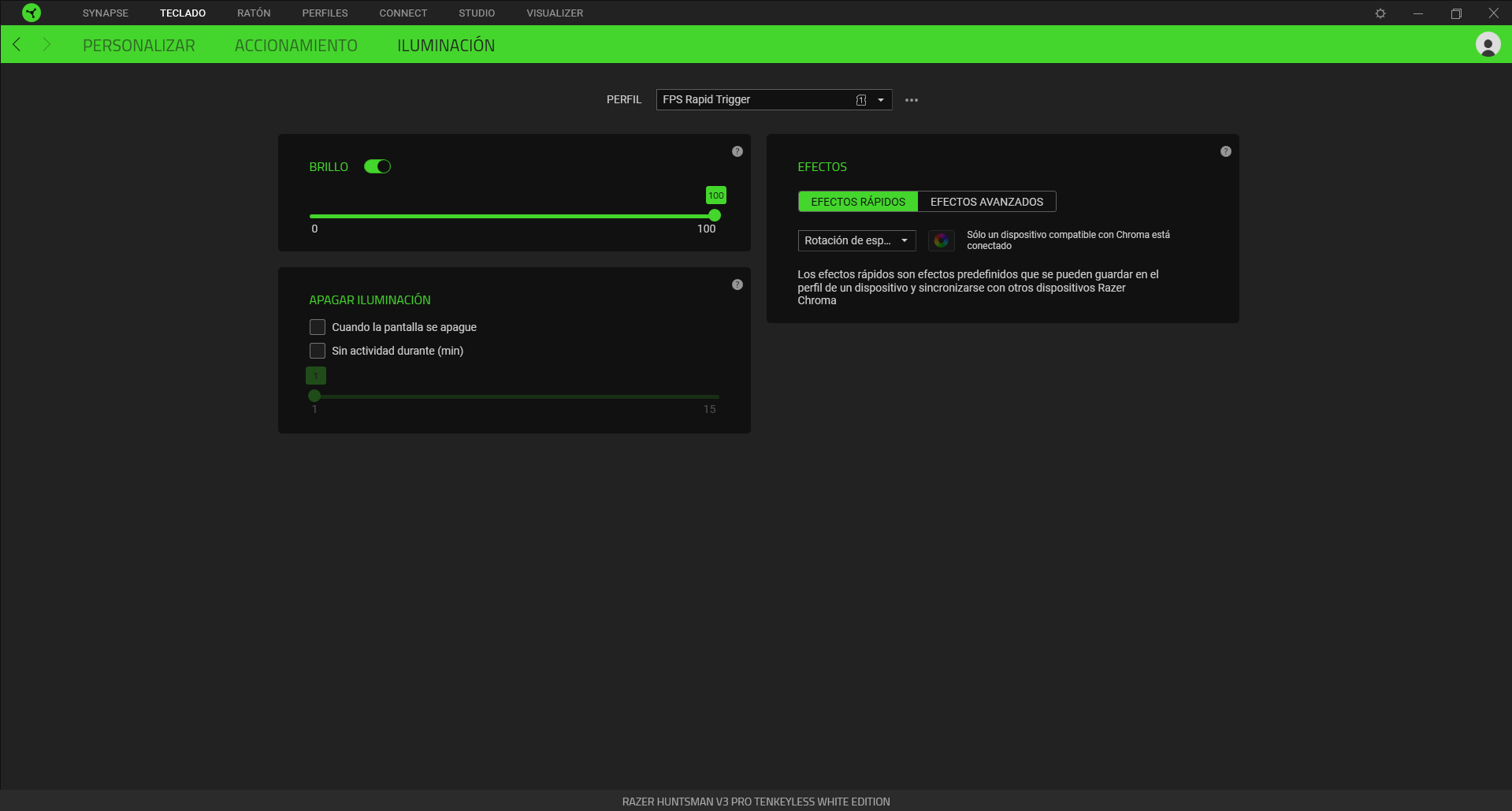 Gracias al software que proporciona la propia Razer vamos a poder configurar completamente nuestro teclado. Solo tenemos que conectarlo a nuestro PC y Synapse lo detectará y actualizará el firmware a la última versión disponible.